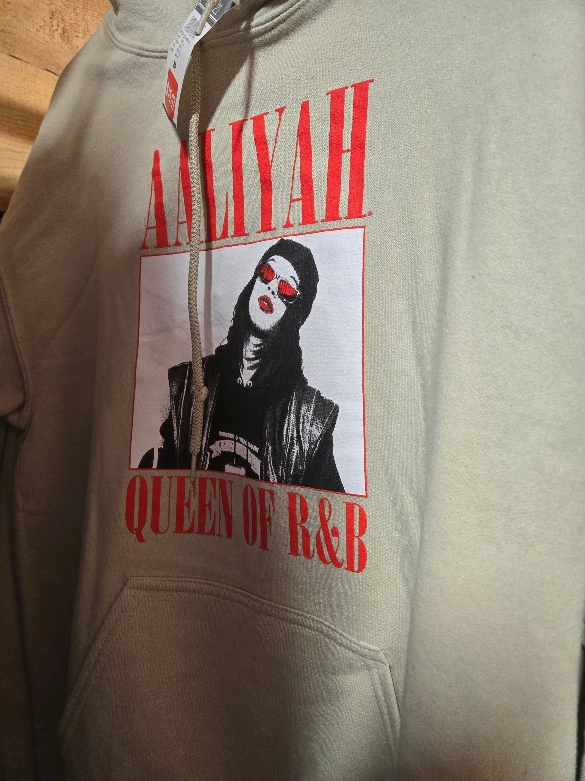 Stay warm and stylish with the Aaliyah Pullover Hoodie. This tan hoodie features the iconic queen of r&B on the front, making it a must-have for any fan. Its comfortable material ensures you feel as good as you look. Show off your love for Aaliyah in this cozy hoodie.