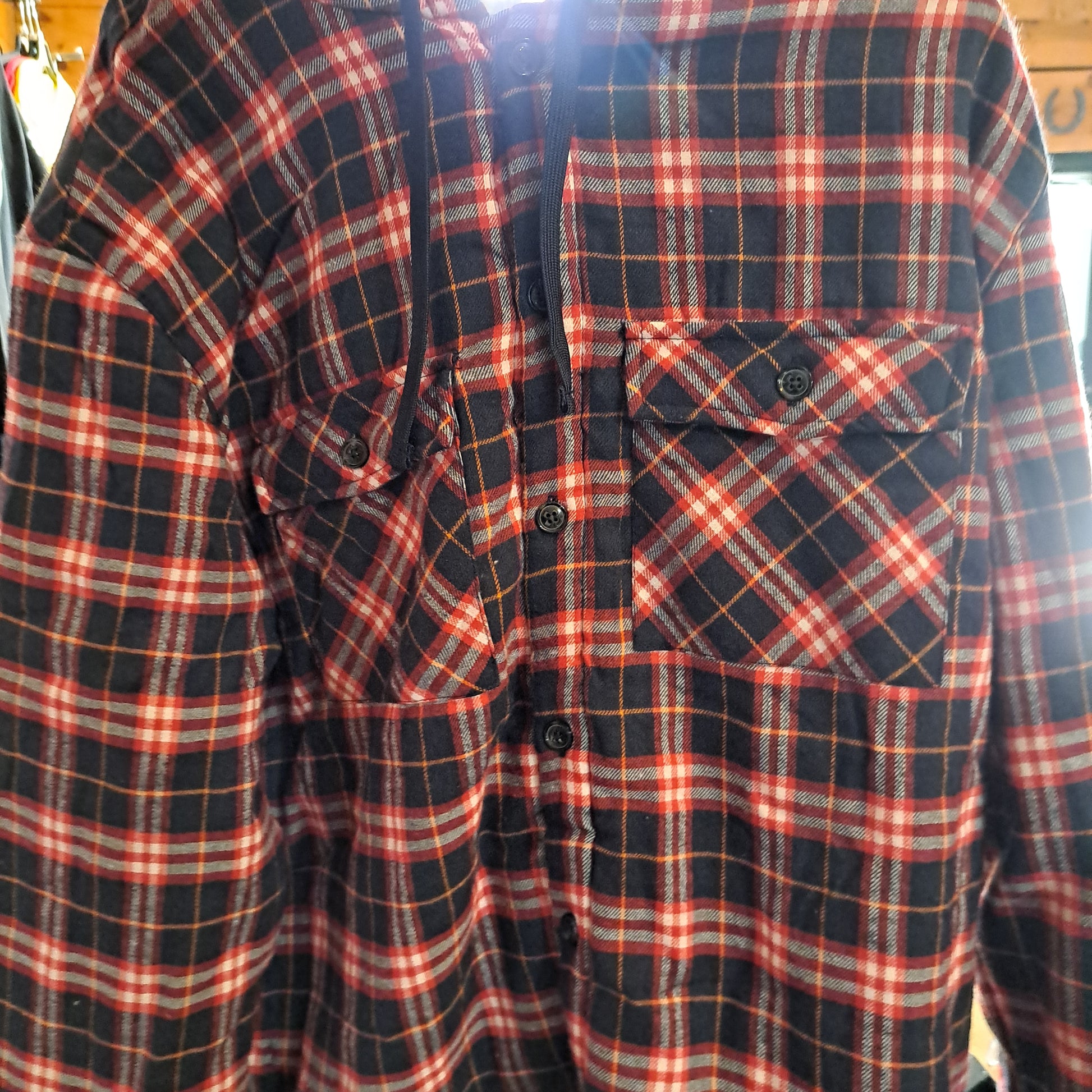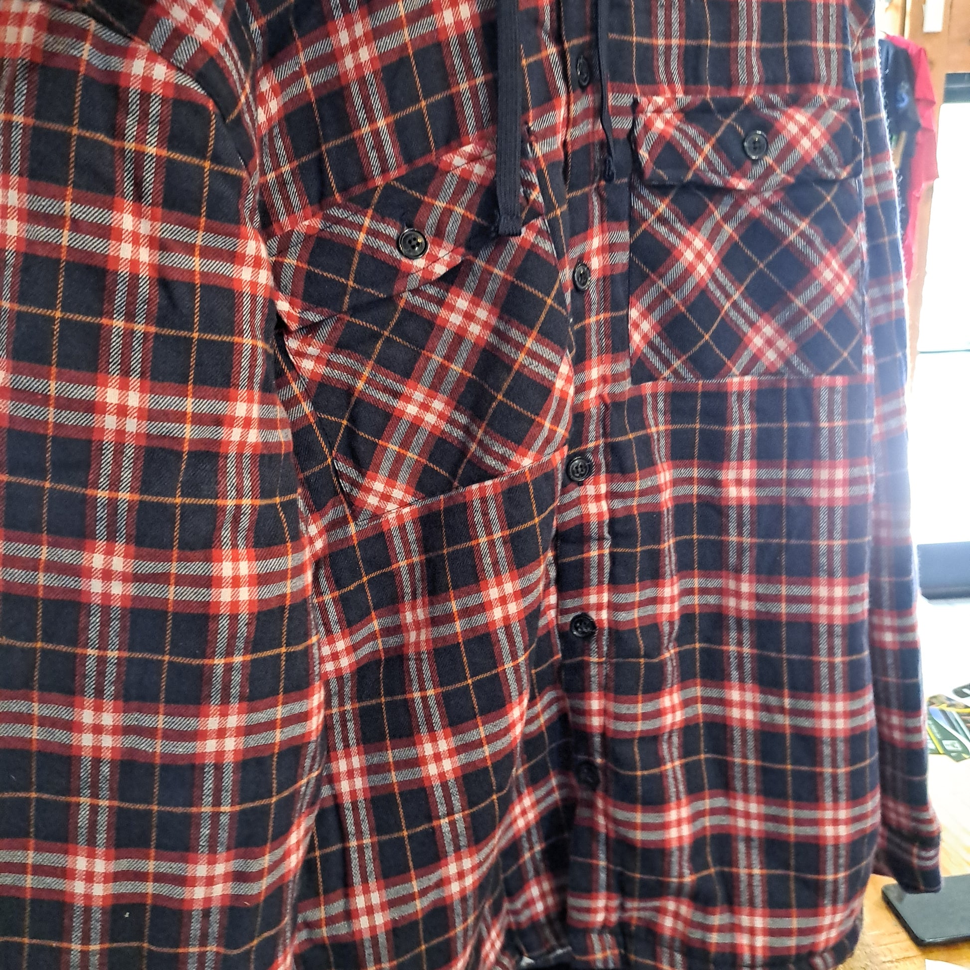 Stay cozy and stylish with our Brooklyn Standard Hoodie. Made with extra warm material, this button up hoodie features a classic flannel pattern in red and navy blue. Perfect for chilly days, you'll look and feel your best in this must-have hoodie.