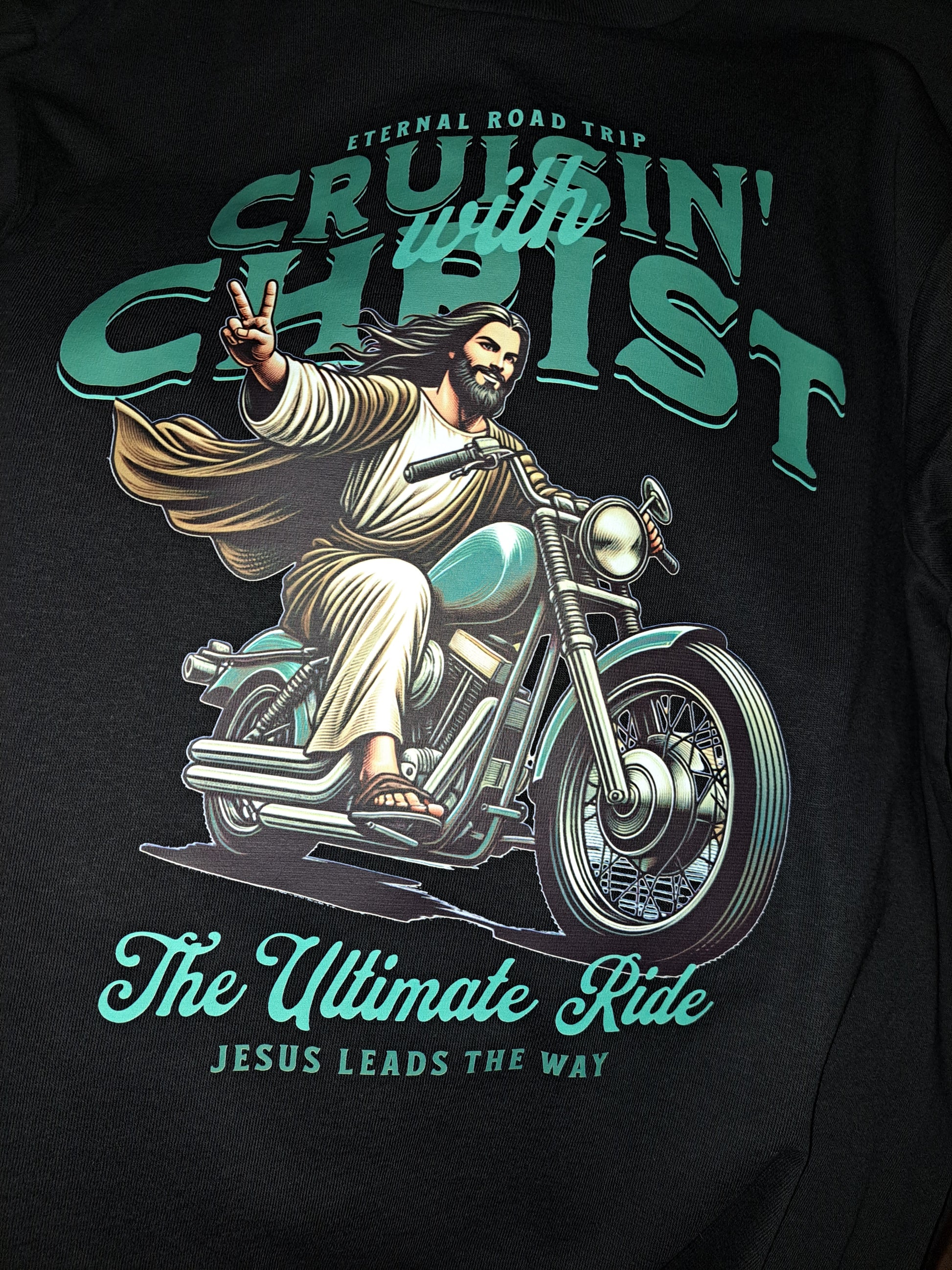 Represent your love for Christ and motorcycles with the Cruisin with Christ Tee. Show your passion for both in a simple and stylish way. Perfect for riding or just everyday wear, this tee is a must-have for any motorcycle enthusiast.