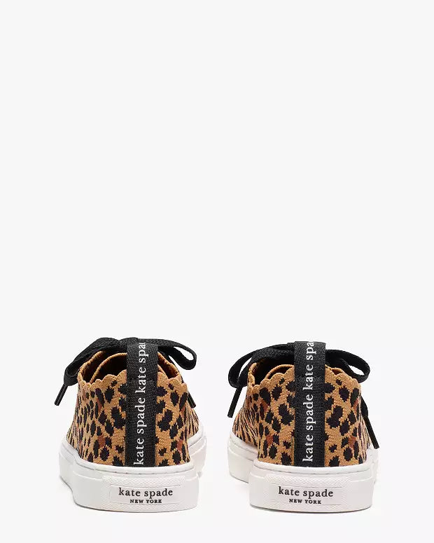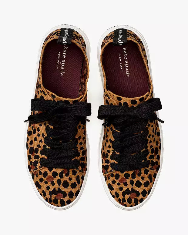 Expertly designed by Kate Spade, the abbie Sneakers offer a unique twist with their leopard-print stretchy tech knit. The 100% cotton twill lining ensures a comfortable fit, while the lace-up closure allows for a secure and stylish look. Perfect for adding a touch of personality to any outfit.