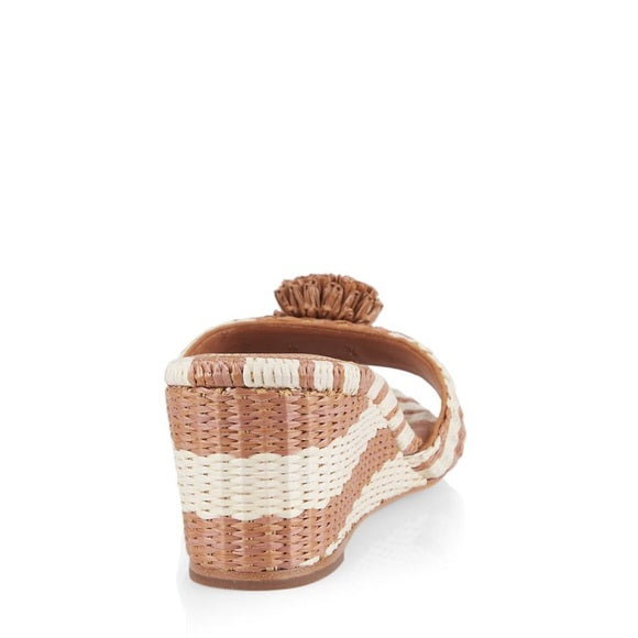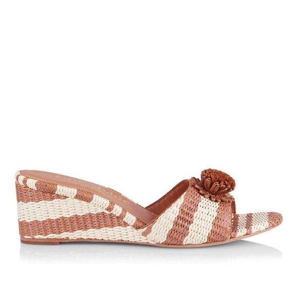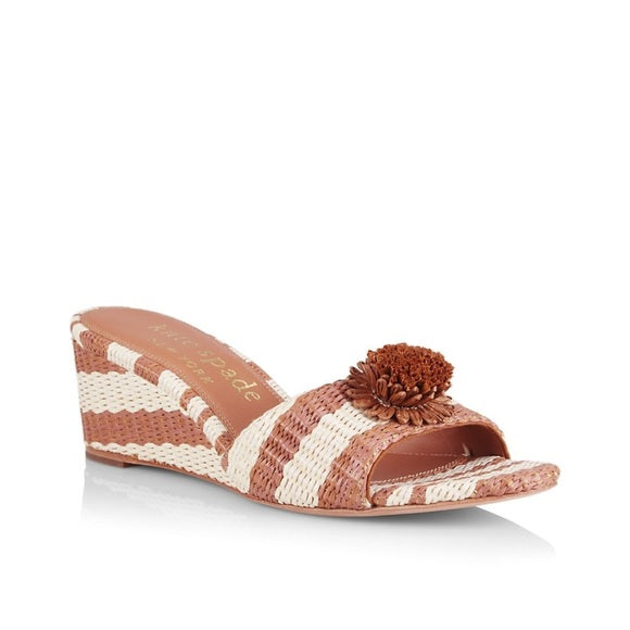 With a 2.25" wedge heel and round toe, slip into style with the Kate Spade Seville Sandals. The 100% sheep leather lining provides ultimate comfort while maintaining a chic look. Imported and available in the stunning color Bungalow, these sandals are a must-have addition to any wardrobe. Style No. K8244.