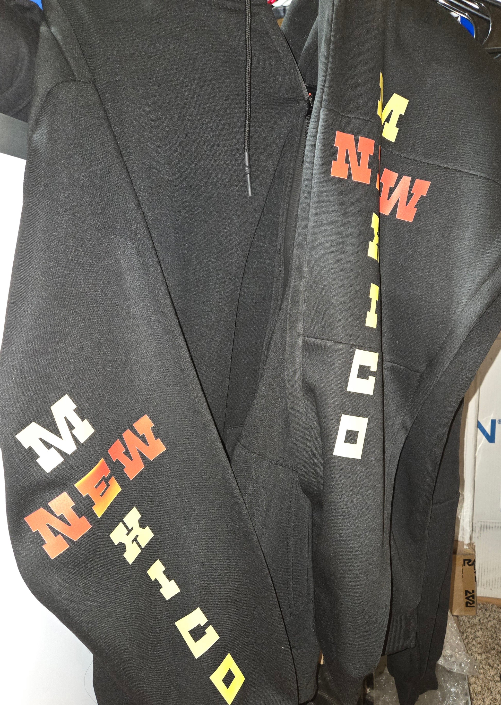 Experience the vibrant culture of New Mexico with our 2pc Jumpsuit. Featuring a unique New Mexico design, this set includes a matching zip-up hoodie and sweatpants. Stay cozy and stylish while representing the Land of Enchantment.