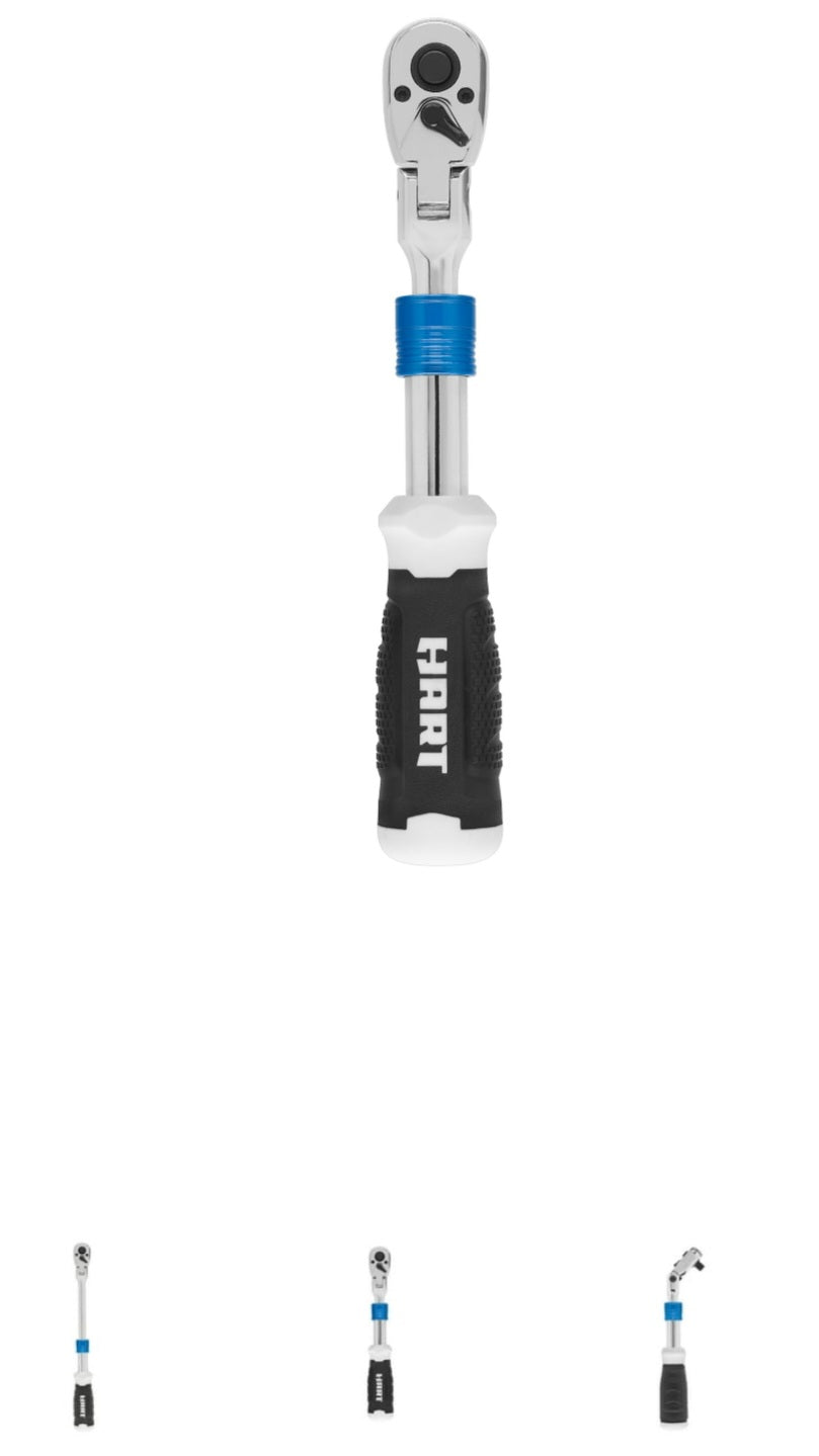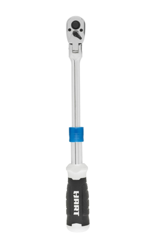This extendable ratchet with a flexible head, ranging from 10"-14", is ideal for reaching tight spots. Made by HART, it offers precise and efficient maneuvering, making it a must-have tool for any job.