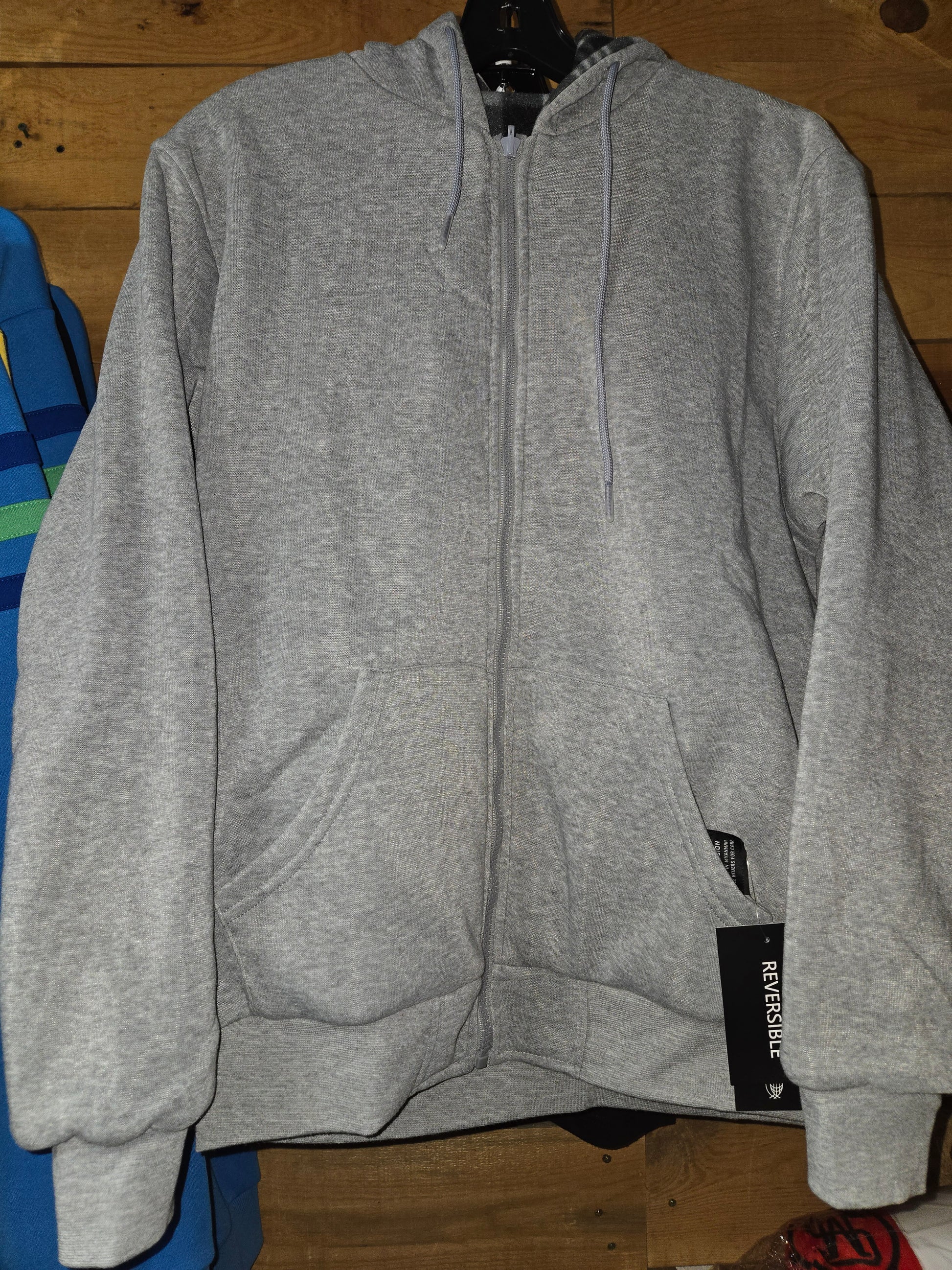 This reversible zip-up hoodie offers versatility and style with two distinct sides to choose from. Stay comfortable and warm while looking effortlessly stylish. Perfect for any occasion.