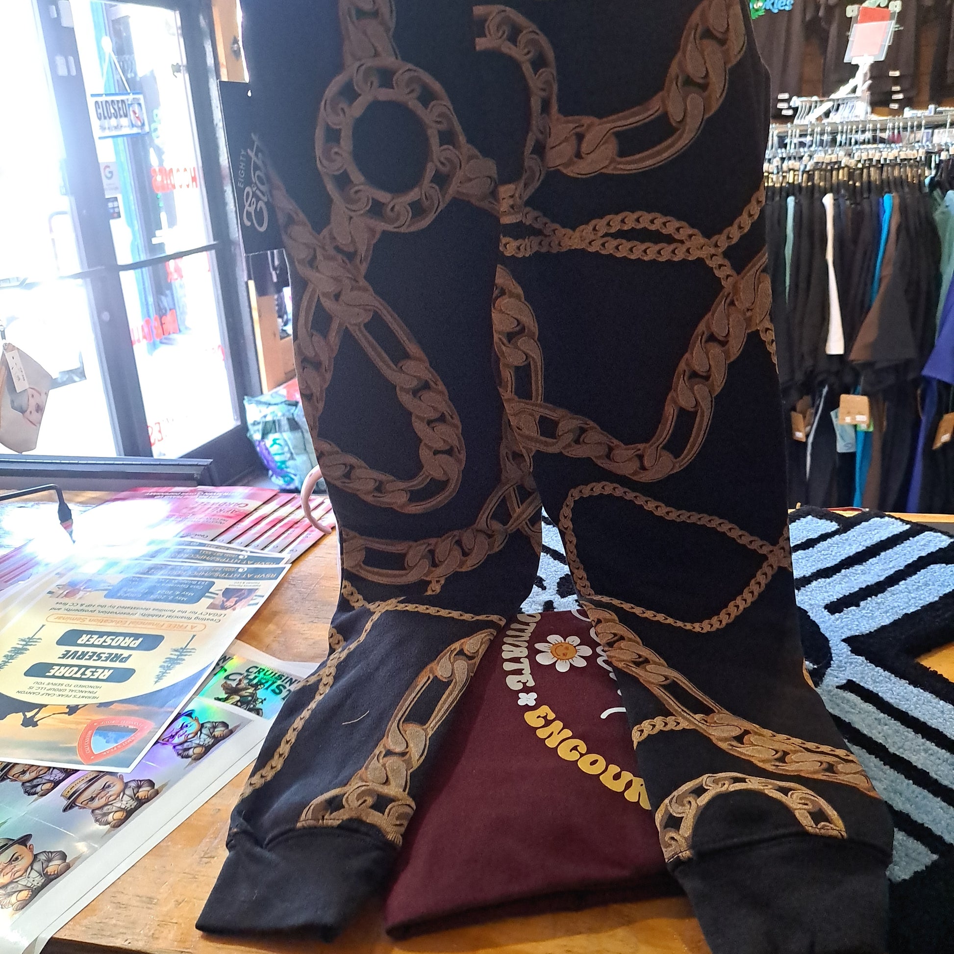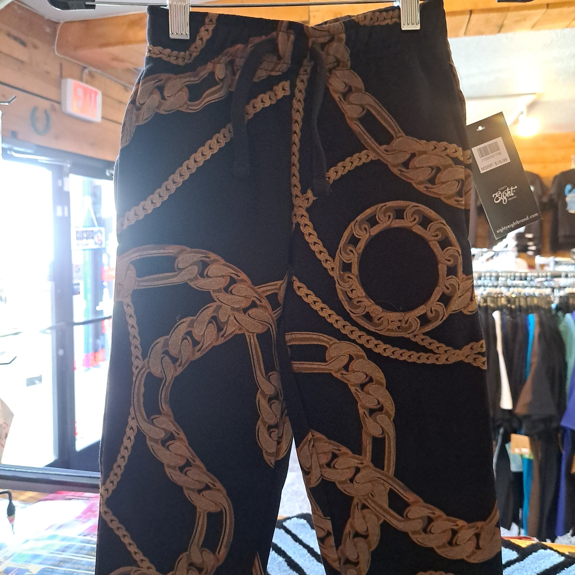 Experience ultimate comfort and style with our Chain Design Sweatpants by Eighty Eight Brand. Made with premium quality materials, these warm-ups will keep you cozy and looking sleek. The chain design adds a unique touch to your athletic wear. Upgrade your workout wardrobe and stay ahead of the trends.