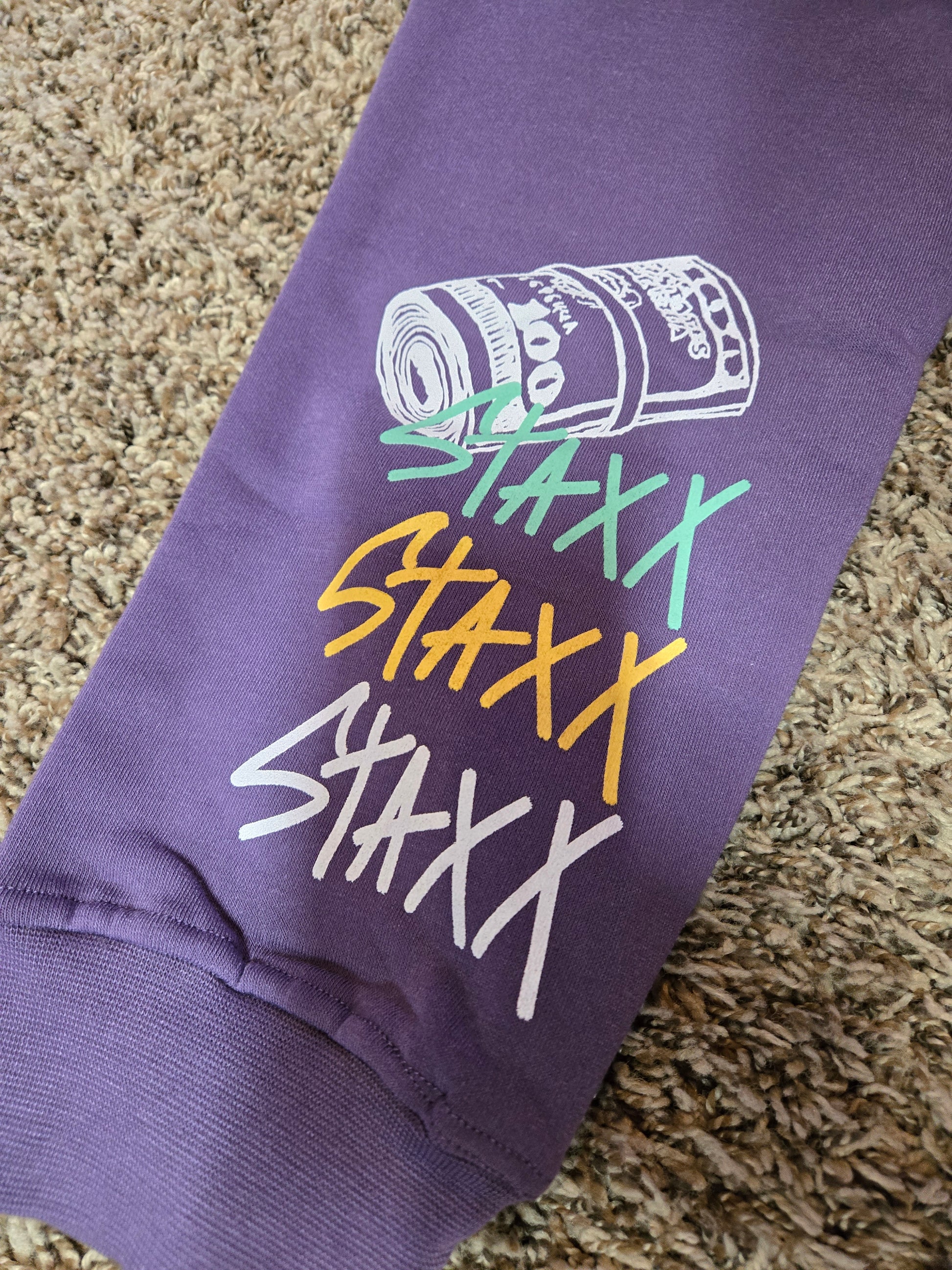 Experience comfort and style with our Blessed Rich Gang Joggers. These purple sweatpants feature the iconic STAXX logo, offering both functionality and fashion. Perfect for a day out or a lazy day in.
